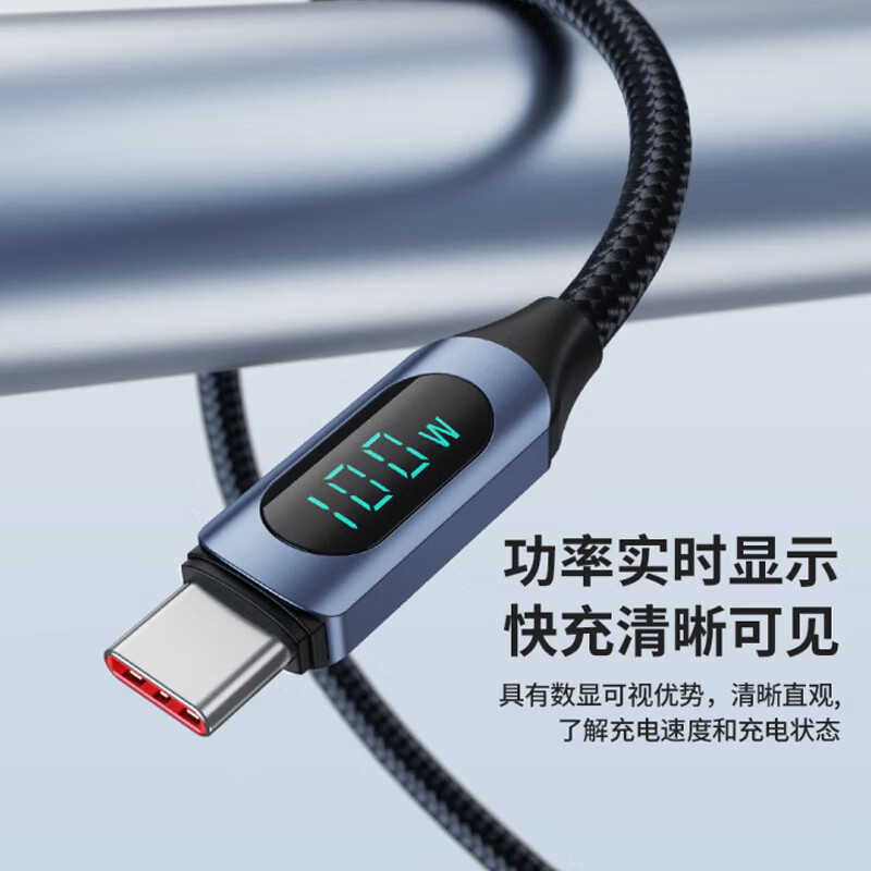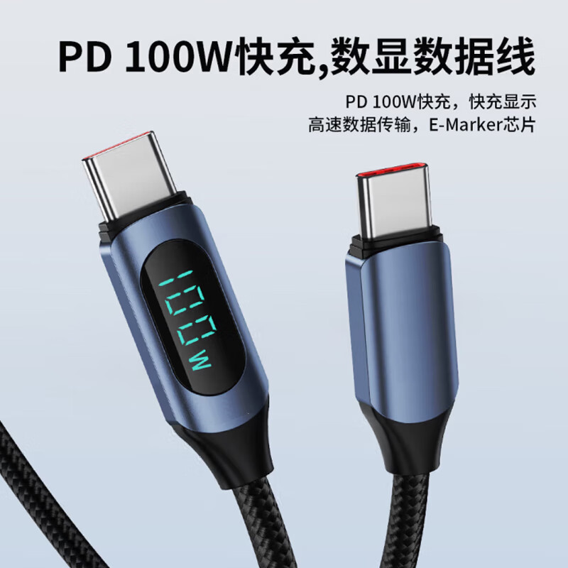昊微双头Type-c数据线100W超级快充PD数显高速传输适用华为mate60苹果15/16小米双向C口闪充手机编织充电线器