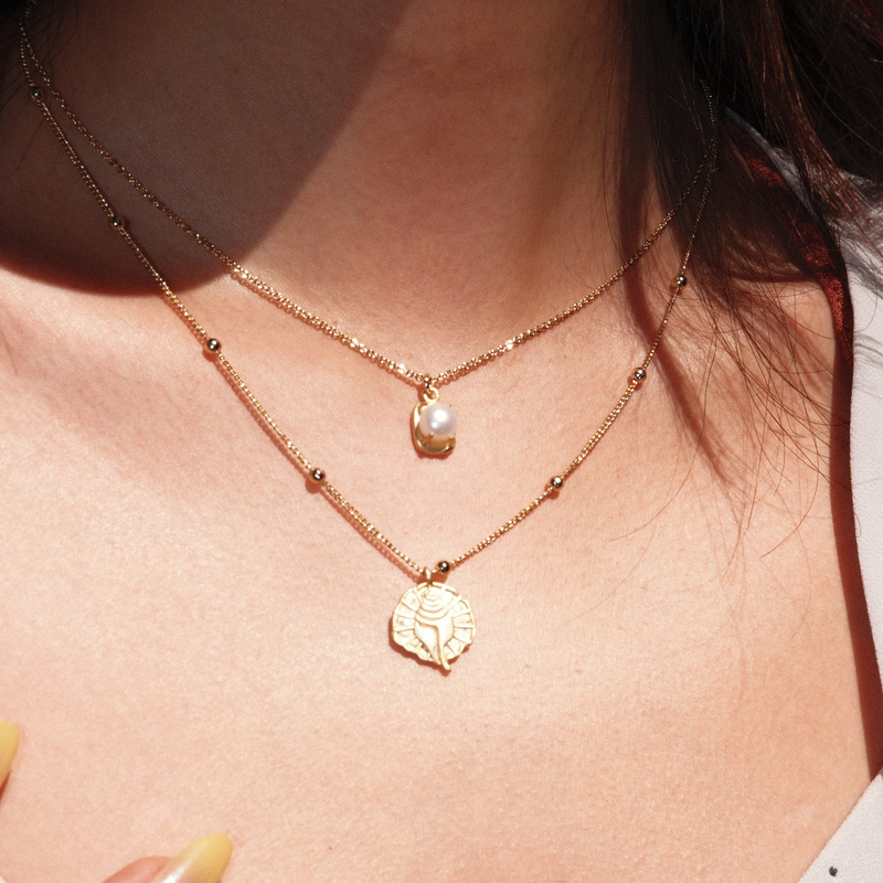 [送女友]lost in echo新款度假高级简约立体贝壳珍珠双层项链