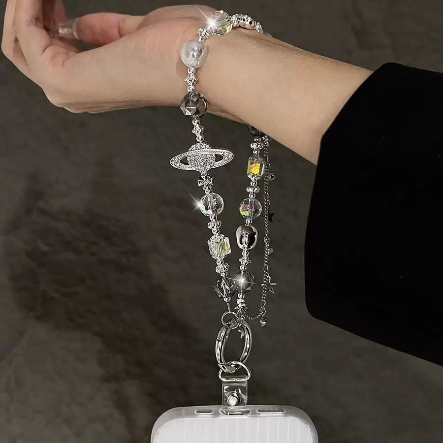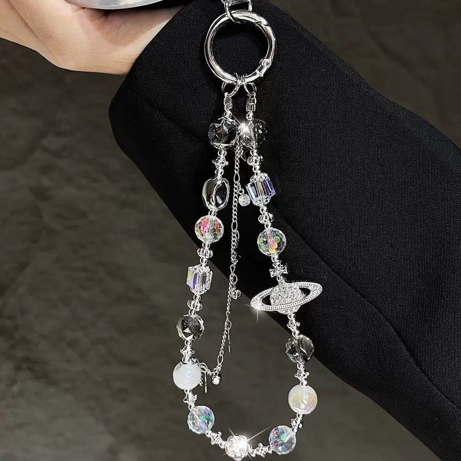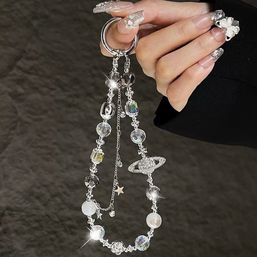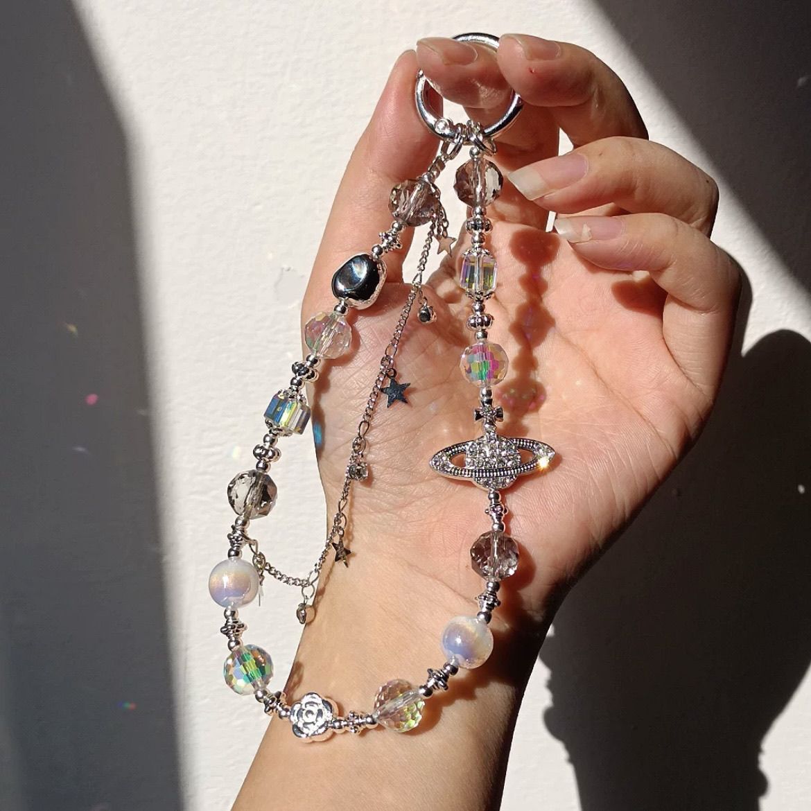 蓝色手机链高级链条水晶串珠ins手提手腕挂绳钥匙扣包包挂件