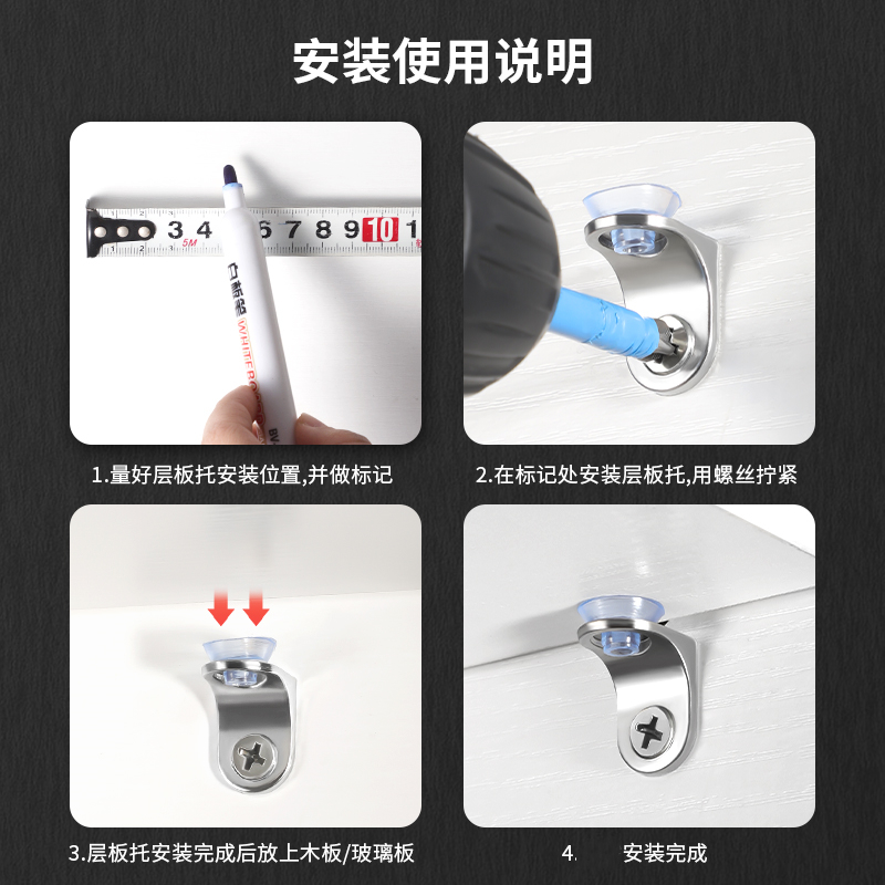 层板托隔板钉橱柜支架层板夹带玻璃板拖固定托木板衣柜承重吸盘