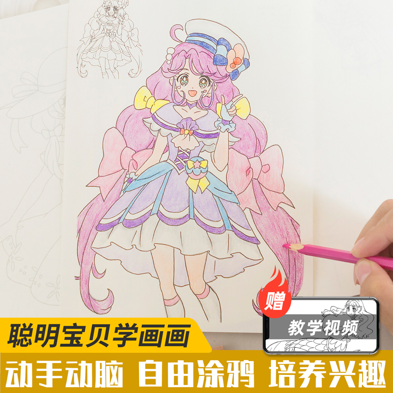 越画越好漫画手绘描摹本描画本素描本公主线稿画画入门临摹小学生儿童幼儿园简笔画描绘本涂色本控笔训练画册