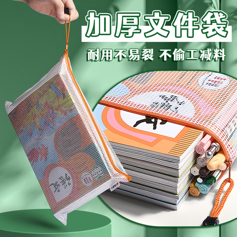 网格文件袋加厚透明网格拉链袋A4试卷收纳袋学生用考试文具袋防水笔袋办公用品批发公文档案袋资料袋包邮