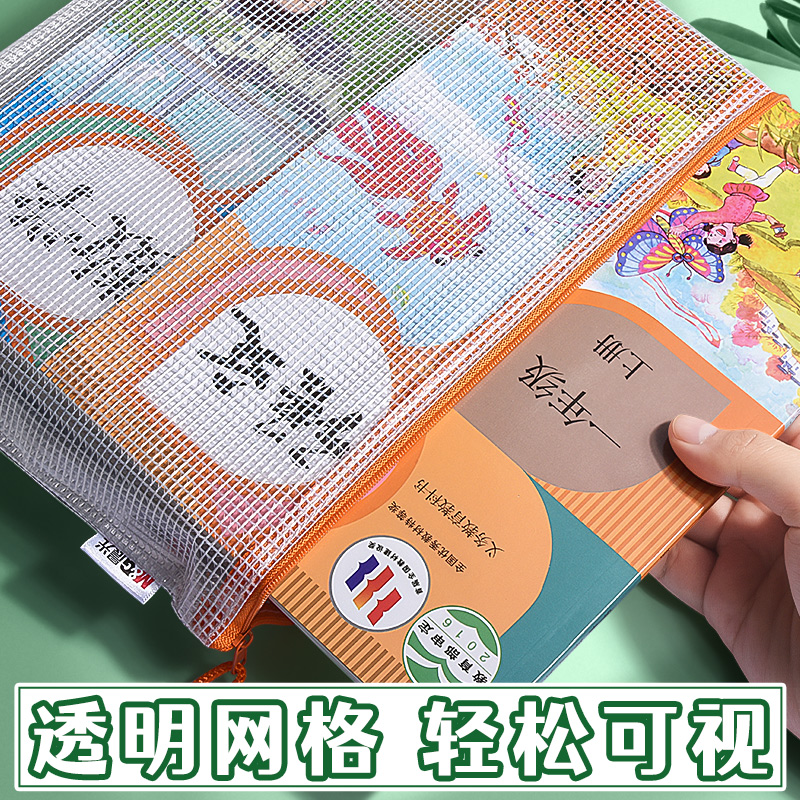 学科科目分类文件袋拉链式双层大容量小学生用资料书本课本分科书袋试卷收纳袋学生装卷子作业袋子A4透明网纱