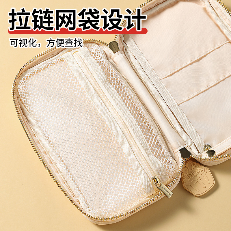 日本KOKUYO国誉刺绣收纳包大容量文具袋小学生男女大容量文具格子收纳袋化妆包