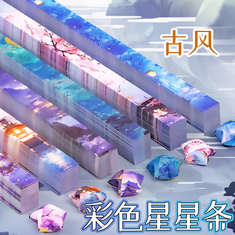 高颜值星空折小星星专用的折纸条儿童手工彩纸彩色可爱卡通幼儿园五角星折纸幸运星小学生衍纸加厚大号渐变色
