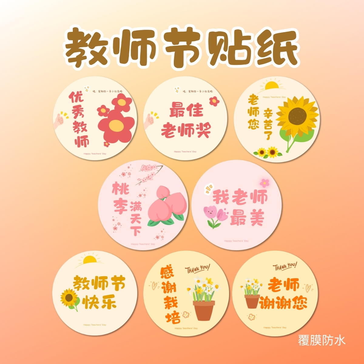 感恩教师节贴纸快乐感谢老师辛苦鲜花封口礼物装饰不干胶手帐贴画