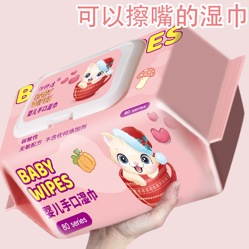 奶龙湿巾大包80抽家庭装婴幼儿新生手口屁专用儿童湿纸巾可擦私处
