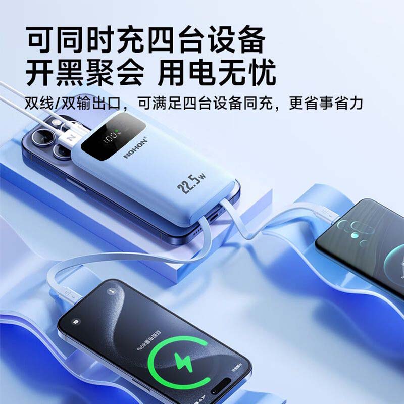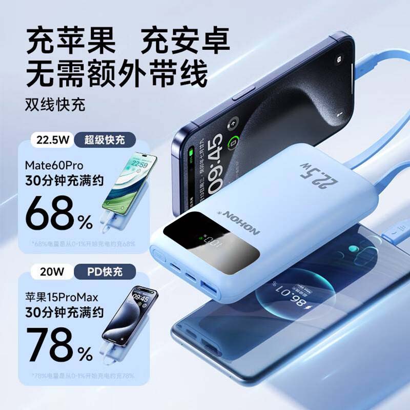 【新国标3C认证 | 顶配20000】诺希20000mAh大容量快充22.5W自带双线移动电源新款充电宝便携高颜值