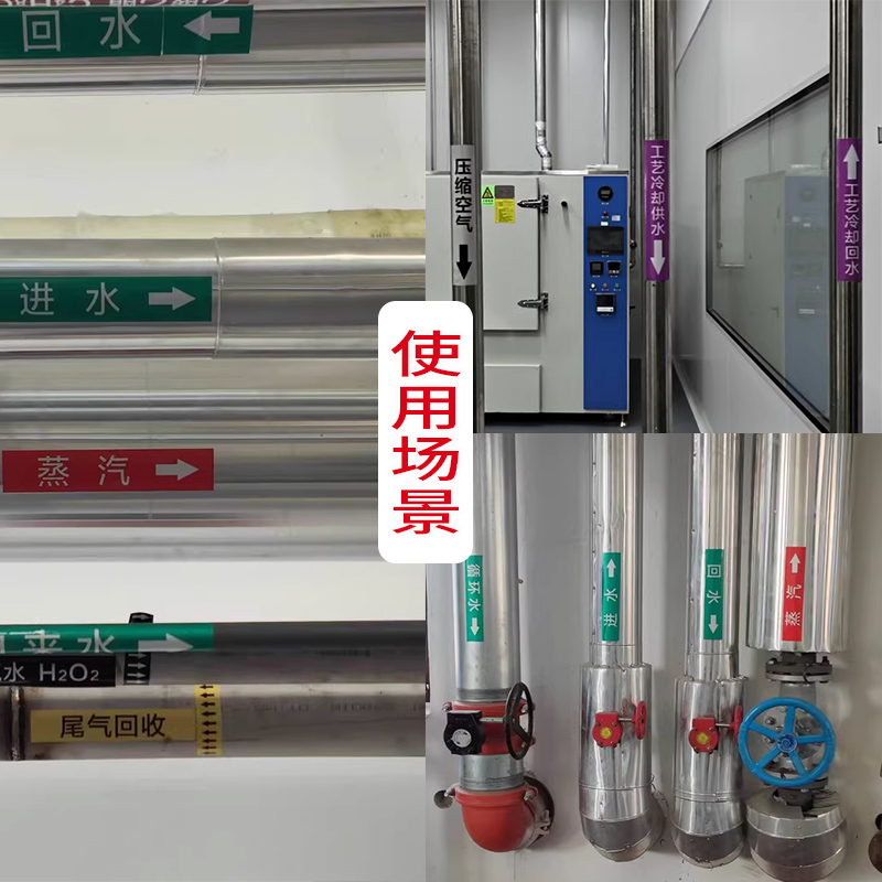 国标水管道标识流向介质CDWR冷却水回水循环水高中低区给水含铬镍废水排气体色环箭头反光膜标签化工管道定做