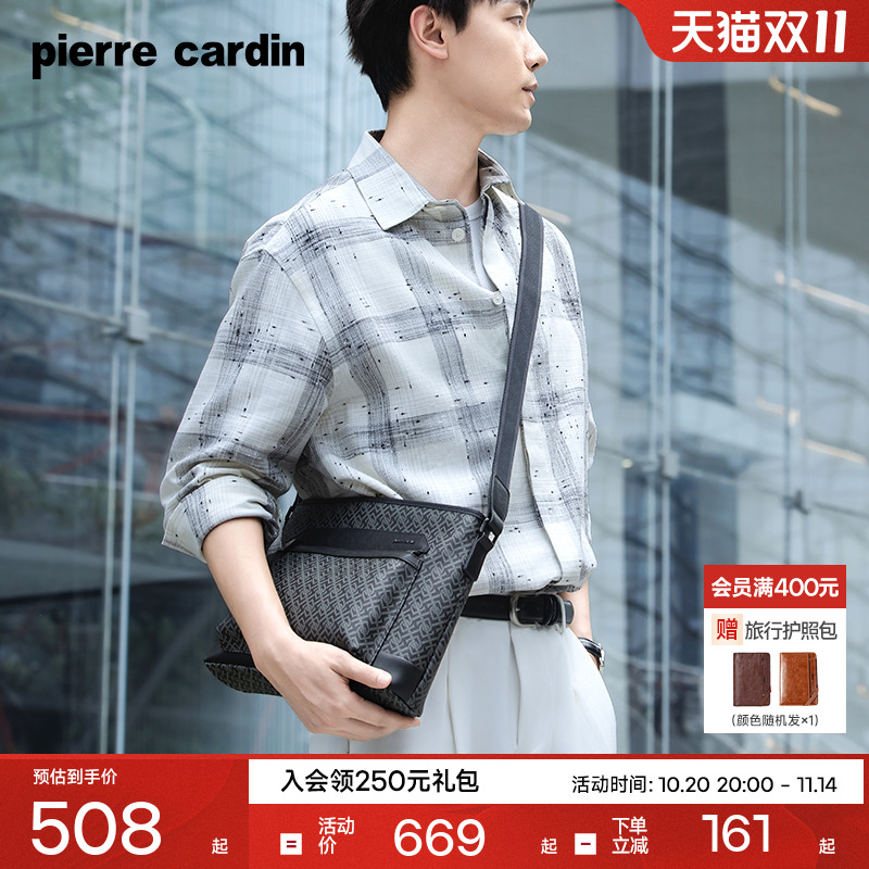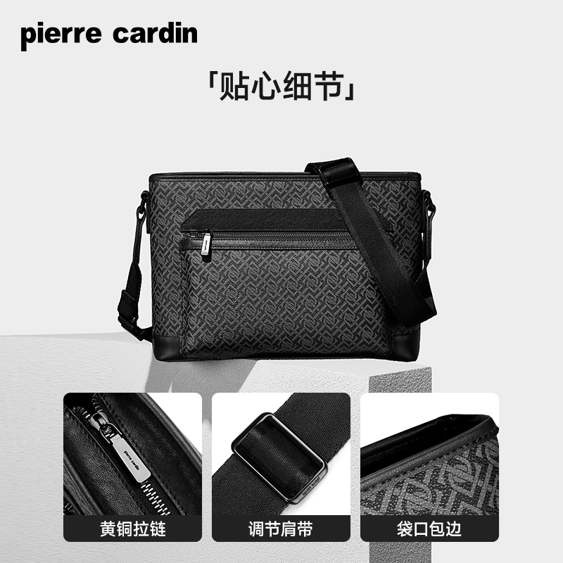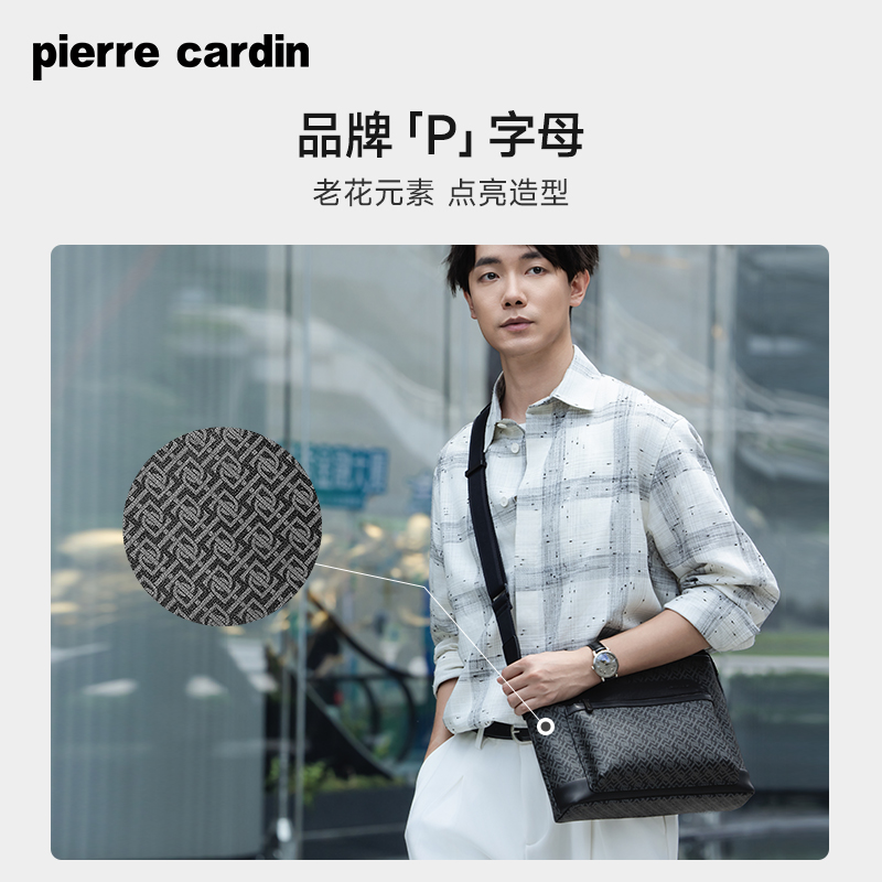 皮尔卡丹男包斜挎包时尚潮流男士PVC老花单肩包休闲通勤男款背包
