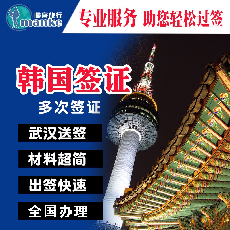 韩国·单次签证·武汉送签·个人旅游商务D2D4F类单次代办简化加急旅行社办理全国材料简单出签率高