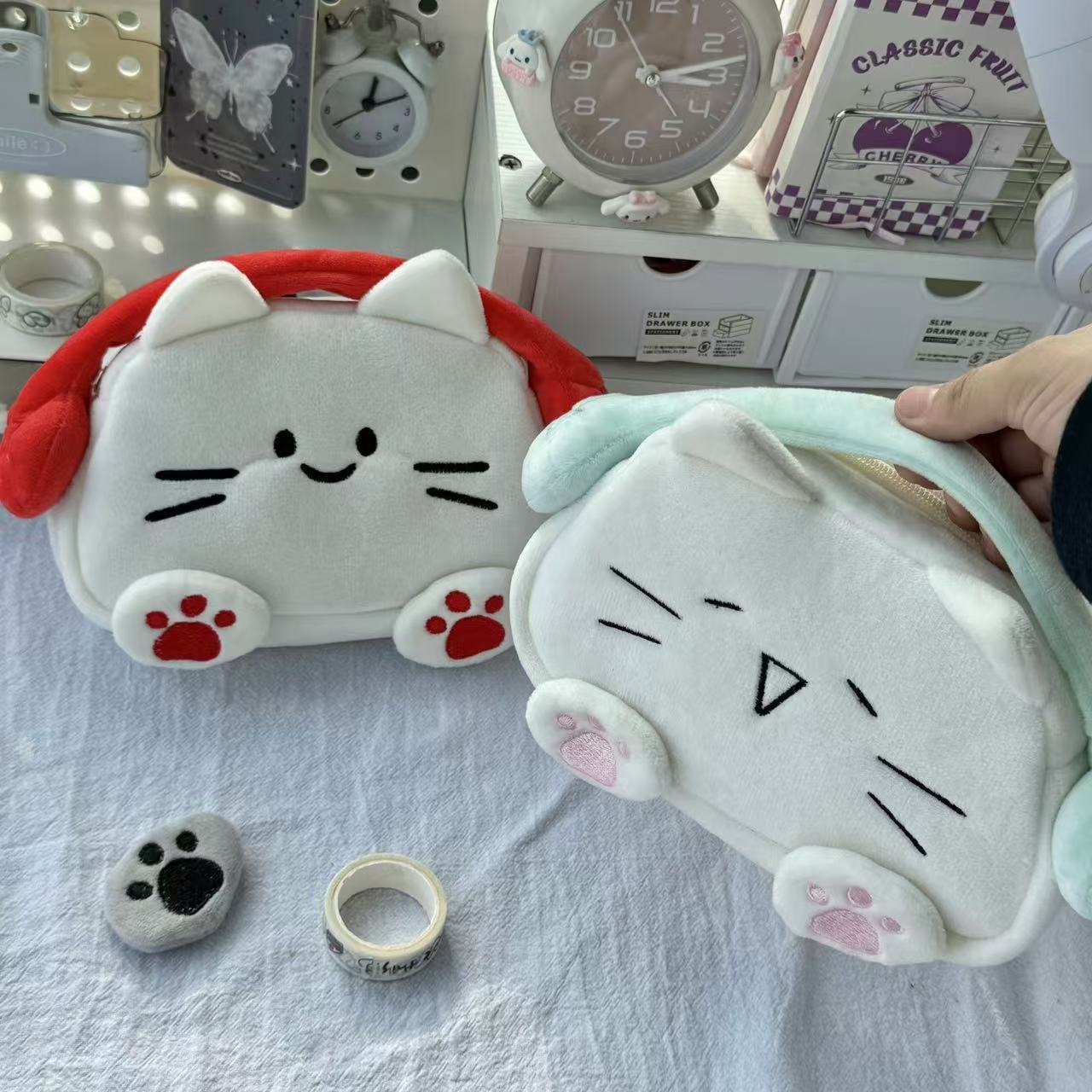 新款耳机猫咪笔袋可爱大容量helloKitty猫透明痛包卡通学生治愈系可可爱爱戴耳机的小猫咪手提简约文具大笔袋