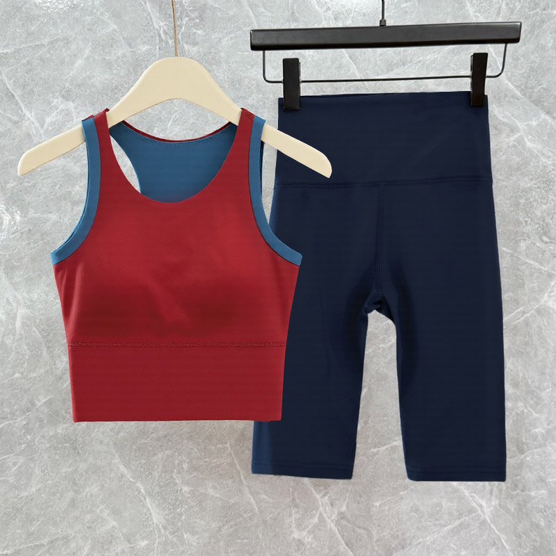 防震工字背心运动内衣女一体式撞色健身文胸跑步瑜伽服套装女新款