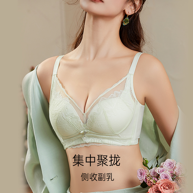 茜施尔性感蕾丝内衣女薄款无钢圈承托小胸聚拢显大调整型内衣