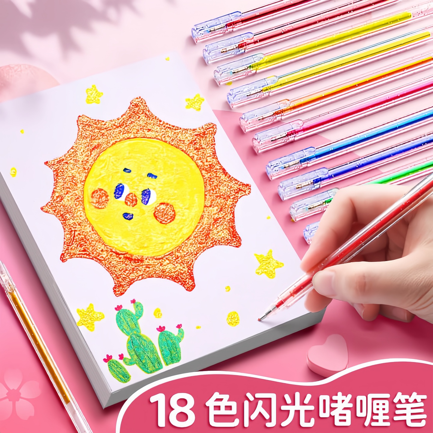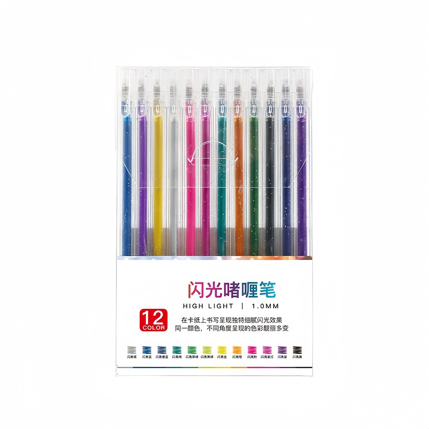 彩色闪光笔啫喱发光亮晶晶流沙银光变色做手账的手帐专用儿童莹光做笔记珠光标记闪亮金属轮廓闪粉水彩笔荧光
