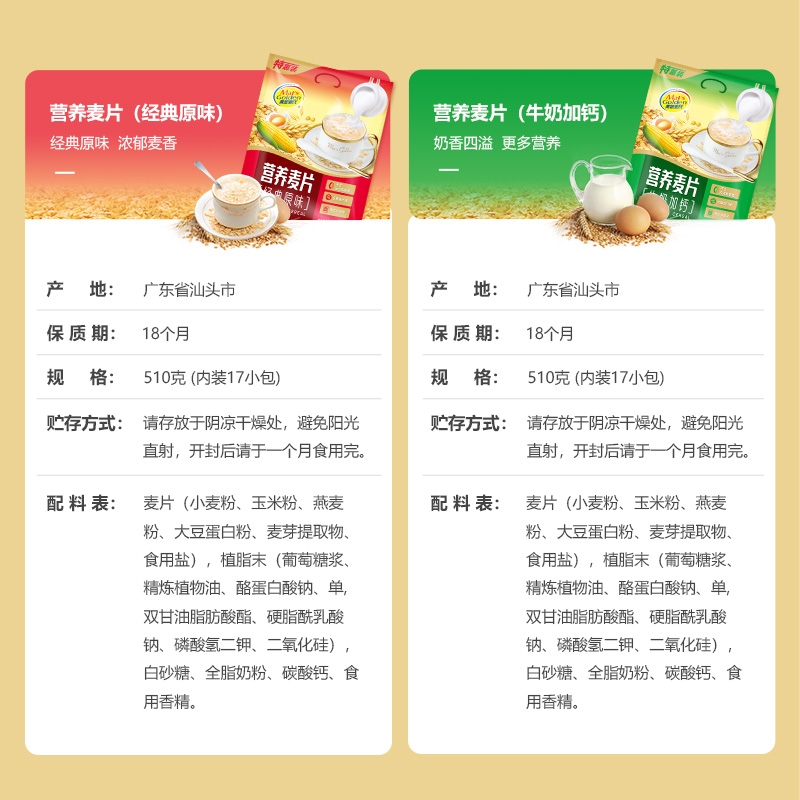 510克牛奶加钙原味麦片即食冲饮营养早餐燕麦片官方旗舰店正品