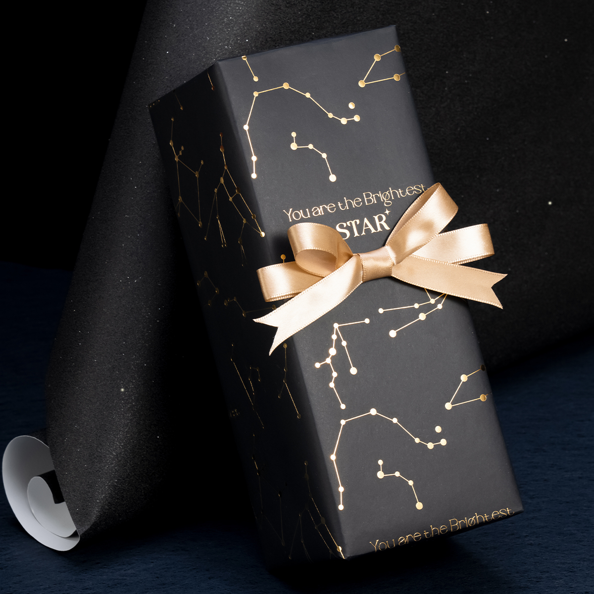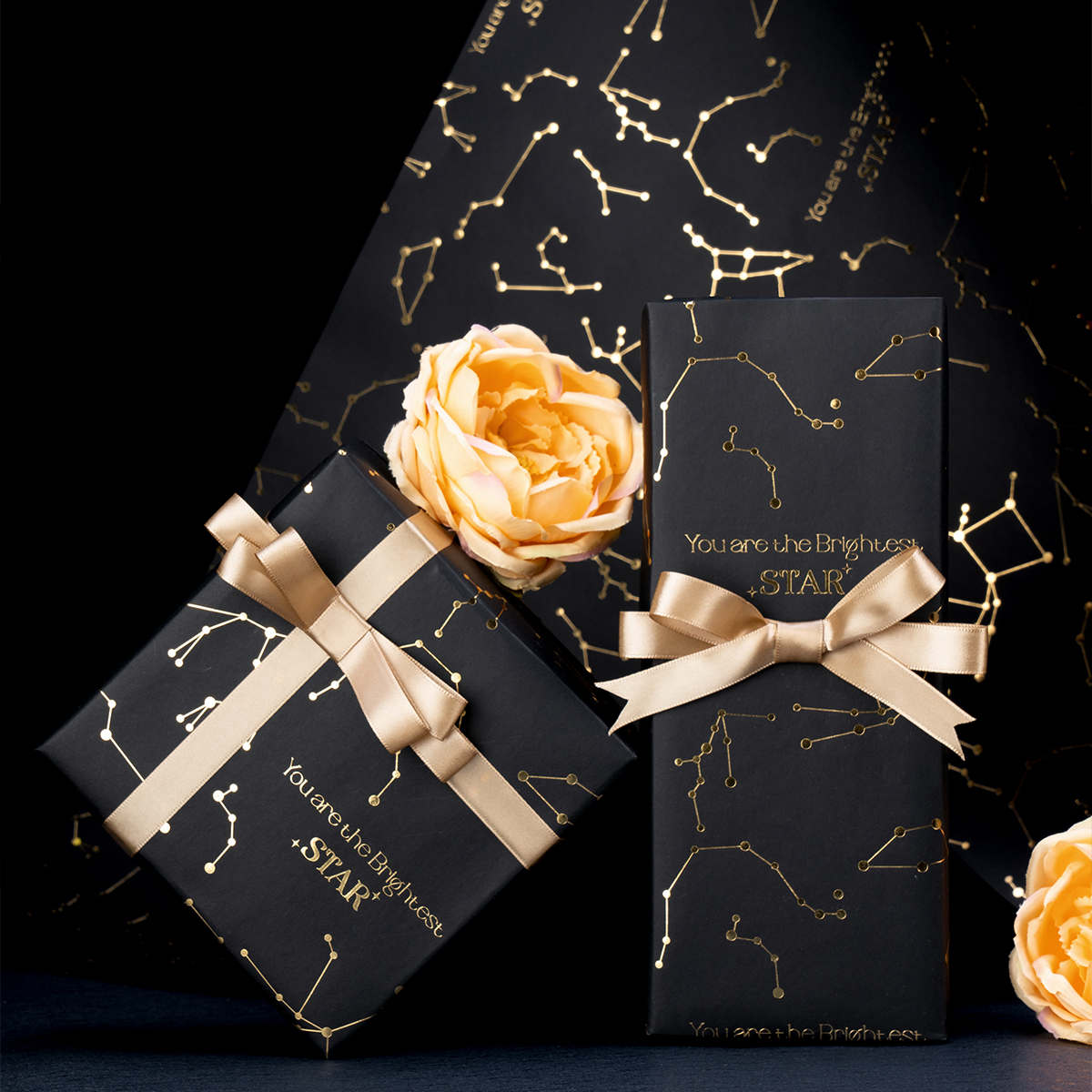 星运环绕|高档轻奢烫金黑色礼物包装纸大尺寸送男生圣诞情人节结婚生日伴手礼盒礼品纸高级感花束包书皮彩纸