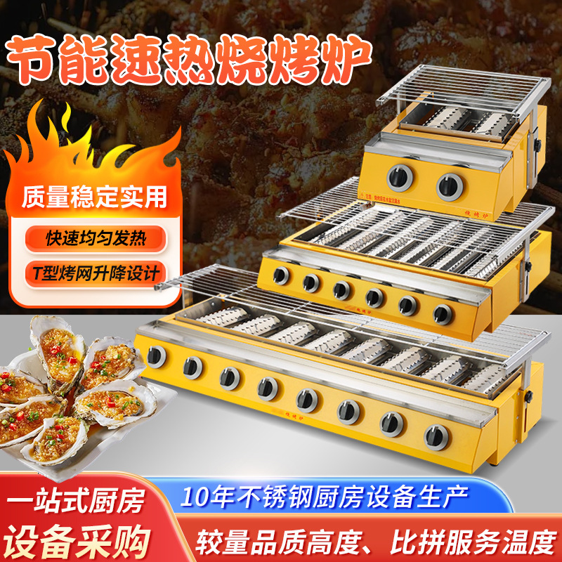 燃气烧烤炉子摆摊商用无烟烧烤炉煤气加厚加宽餐厅烤生蚝摆摊批发