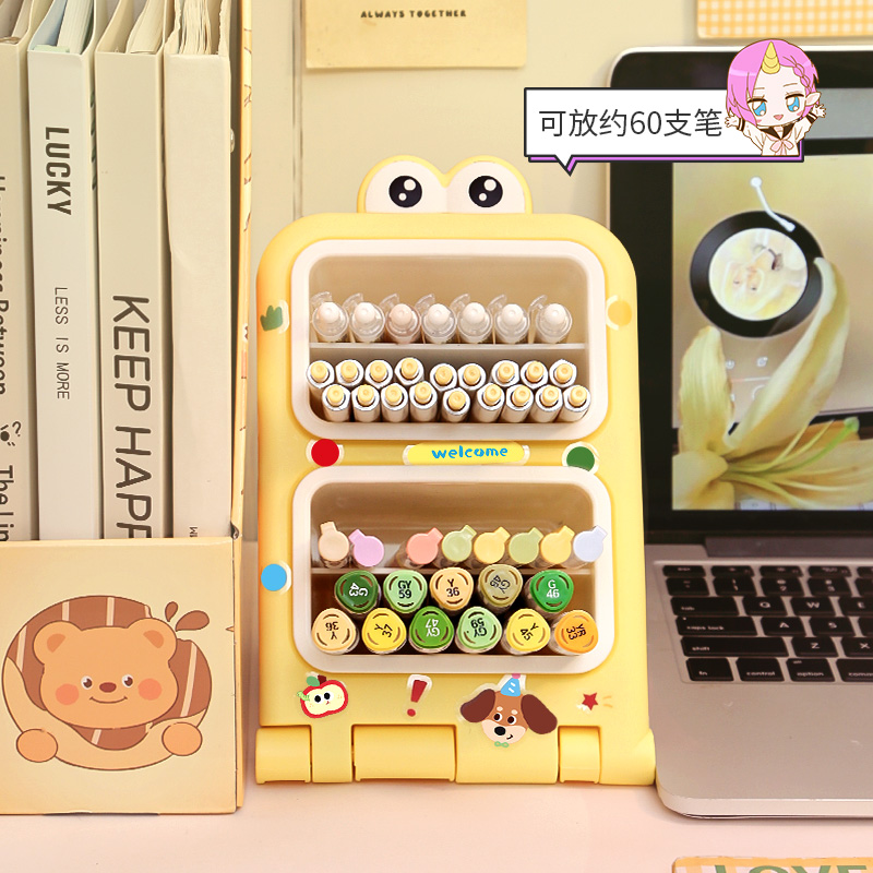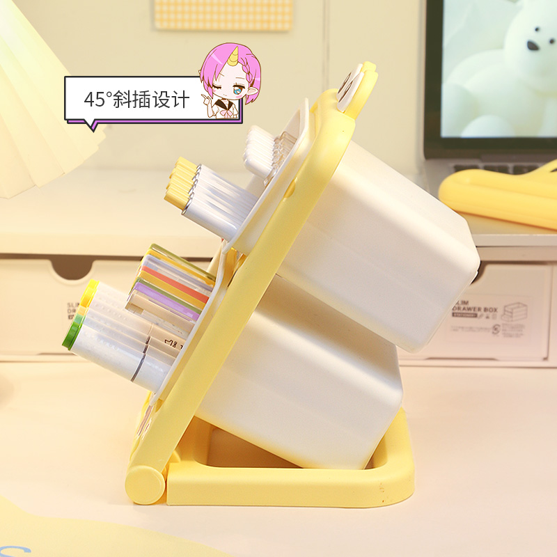 多巴胺桌面斜插式笔筒办公室文具儿童学生书桌大容量马克笔收纳盒