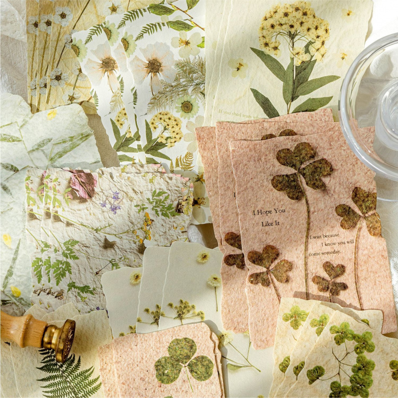 陌墨素材纸 一纸花语系列 复古花卉手帐装饰打底素材30张 4款