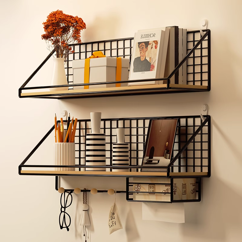 学生宿舍墙上置物架墙面免打孔书本书架壁挂式收纳架承重书房悬挂