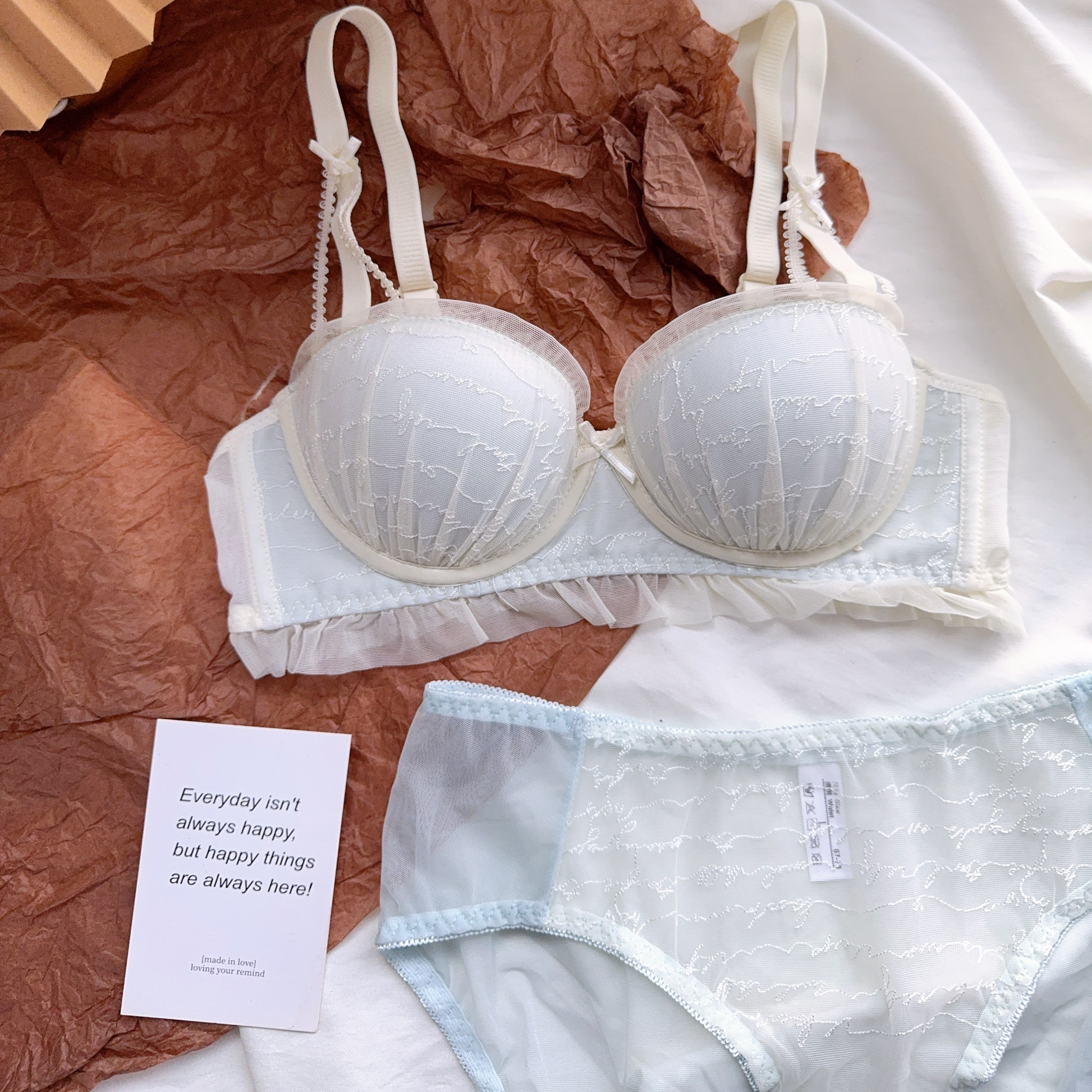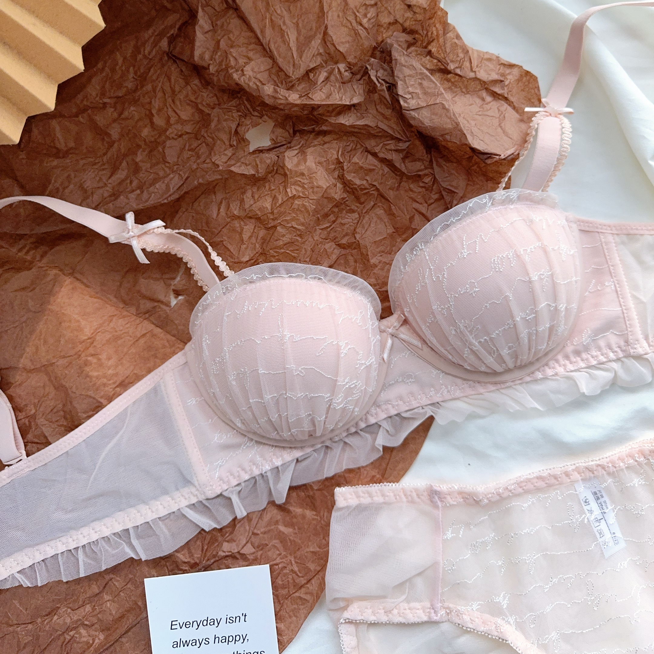 法式性感美胸内衣女半杯小胸聚拢不空杯无钢圈上托蕾丝文胸罩套装