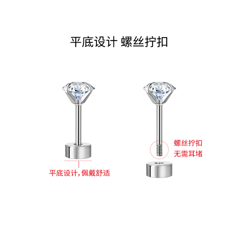 医用钛钢耳钉女养耳洞免摘平底拧扣螺丝耳骨防过敏爆闪钻石耳饰