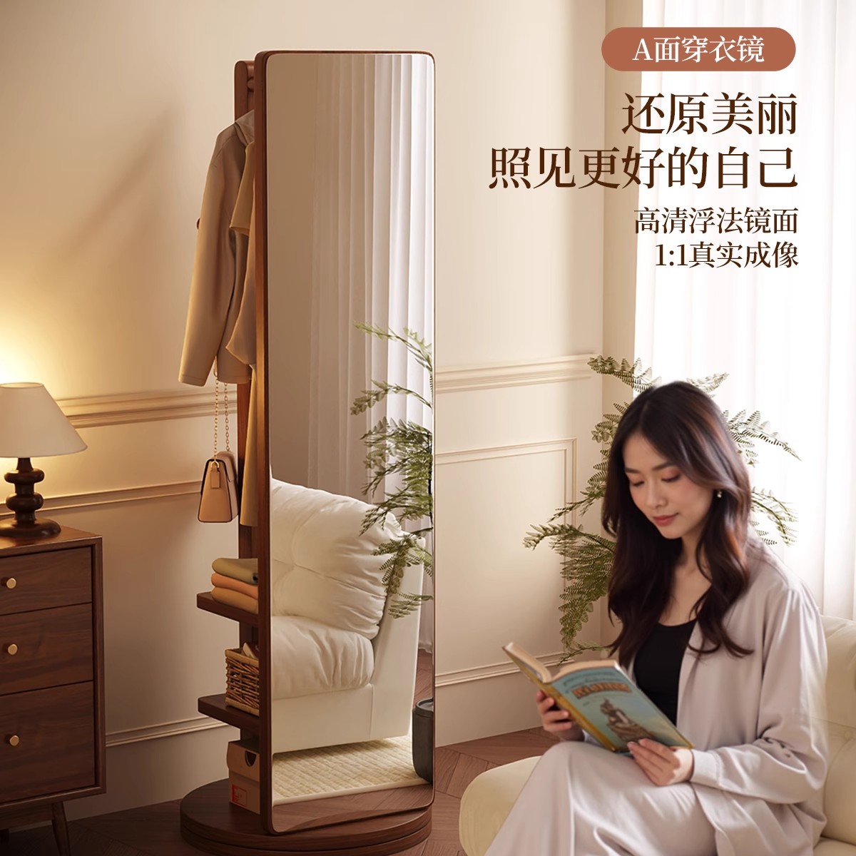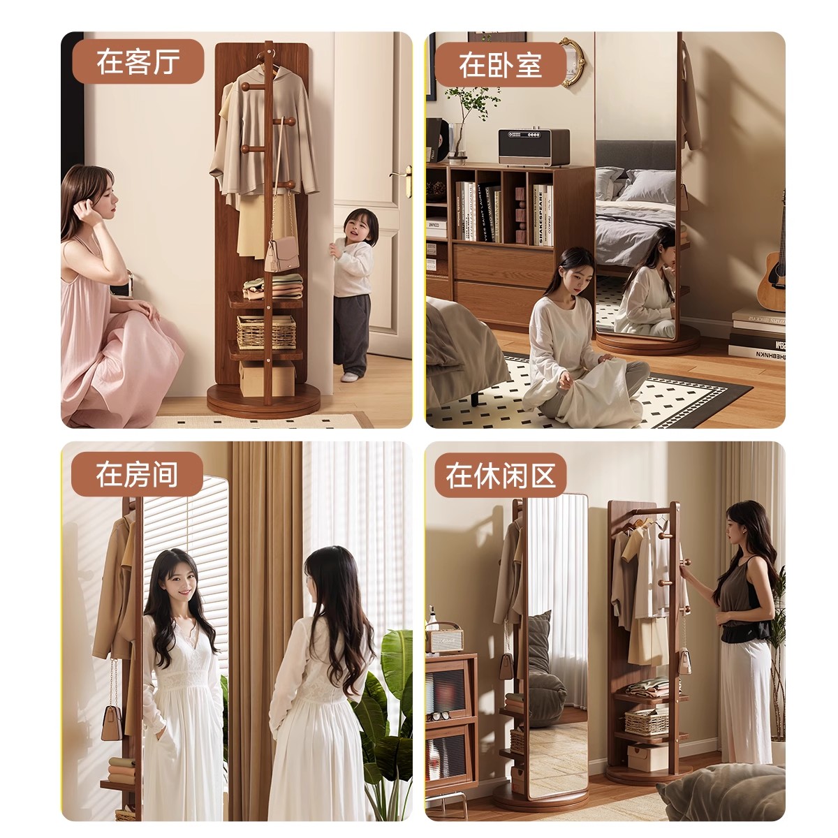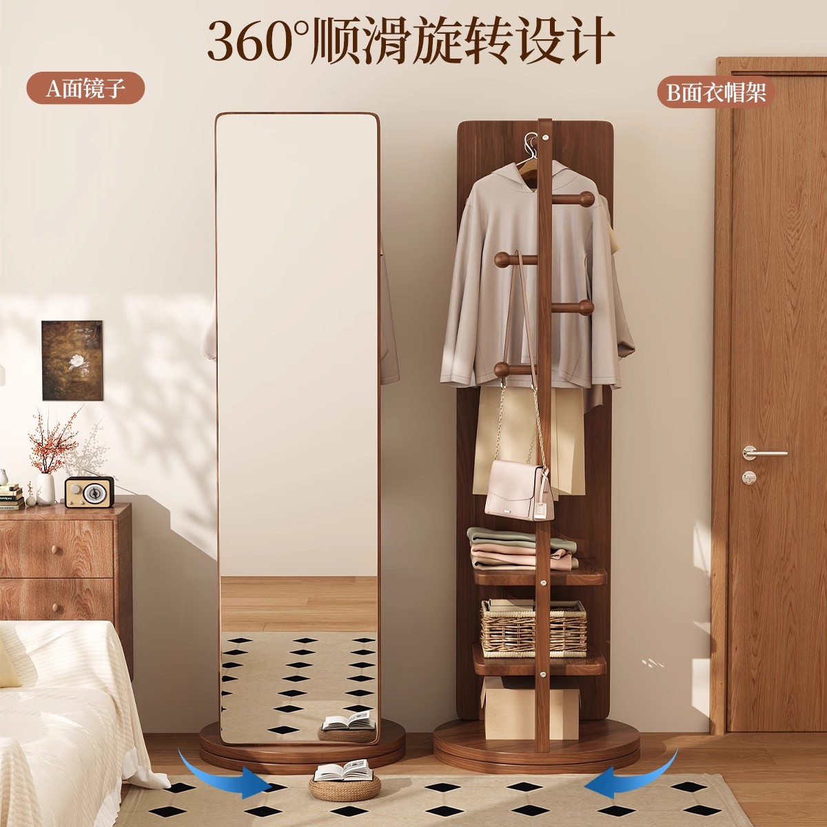全身落地镜家用女生卧室可旋转移动穿衣镜挂衣帽架一体大试衣镜子