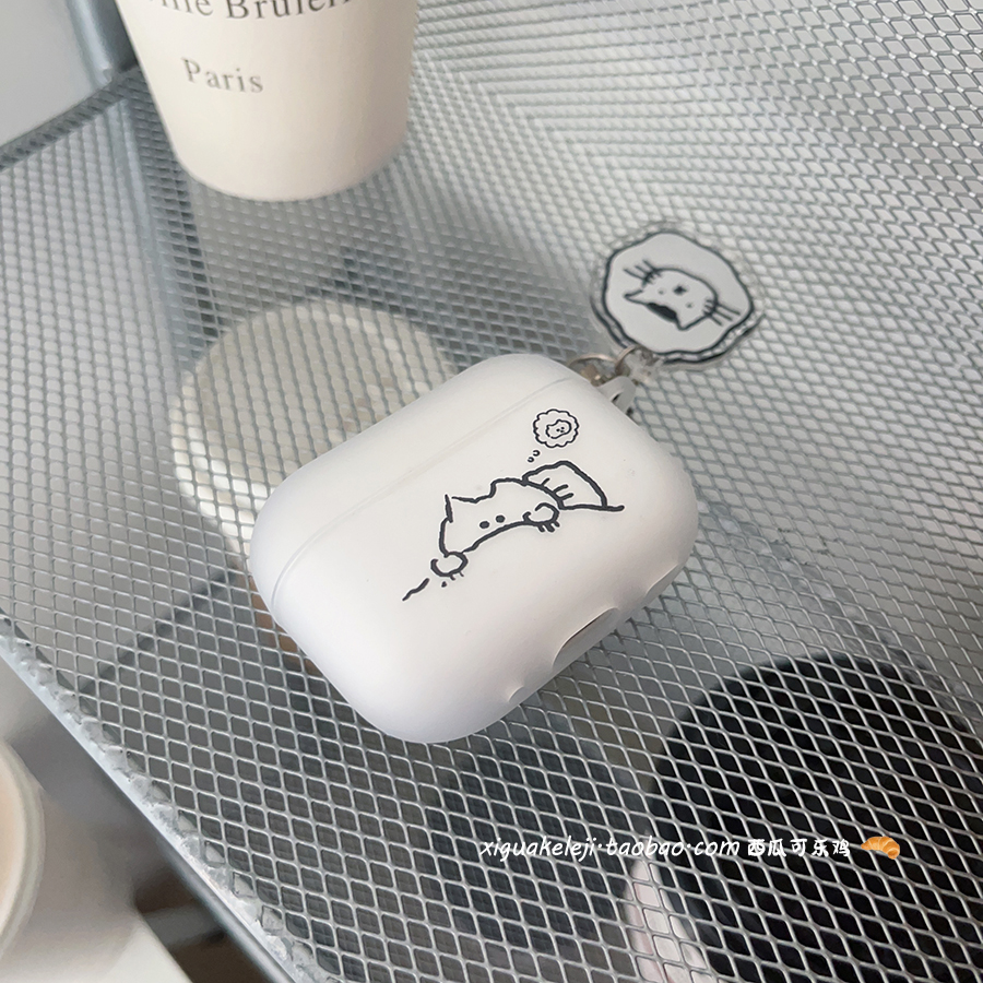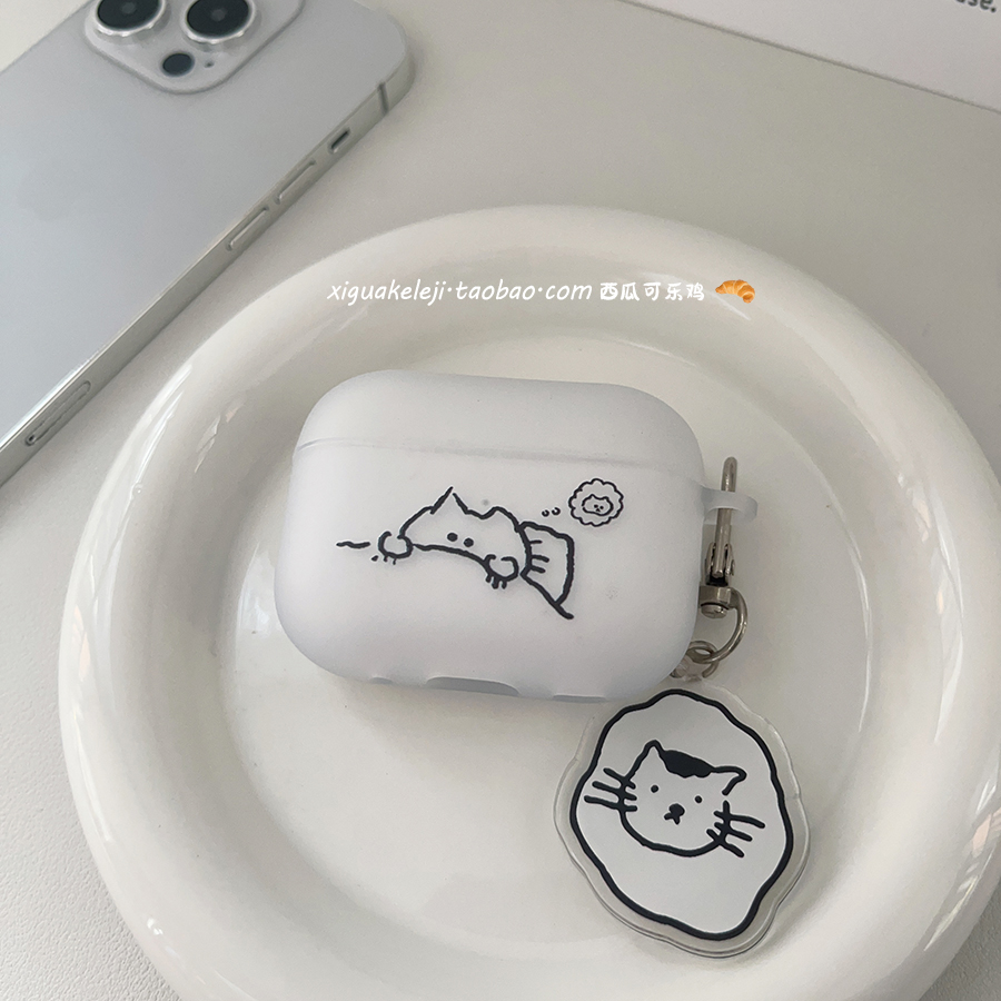 睡不着小猫,airpodspro3保护套1/2/4代适用苹果耳机保护壳二代三四五无线蓝牙外壳磨砂半透明硅胶女生新款
