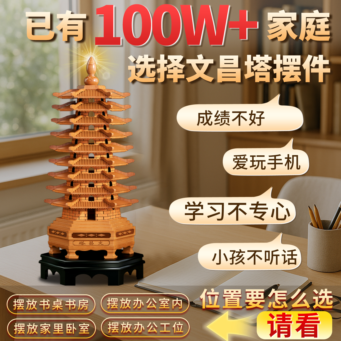 桃木文昌塔摆件木制十三层九层13层学生用9层7书房桌面装饰旗舰店