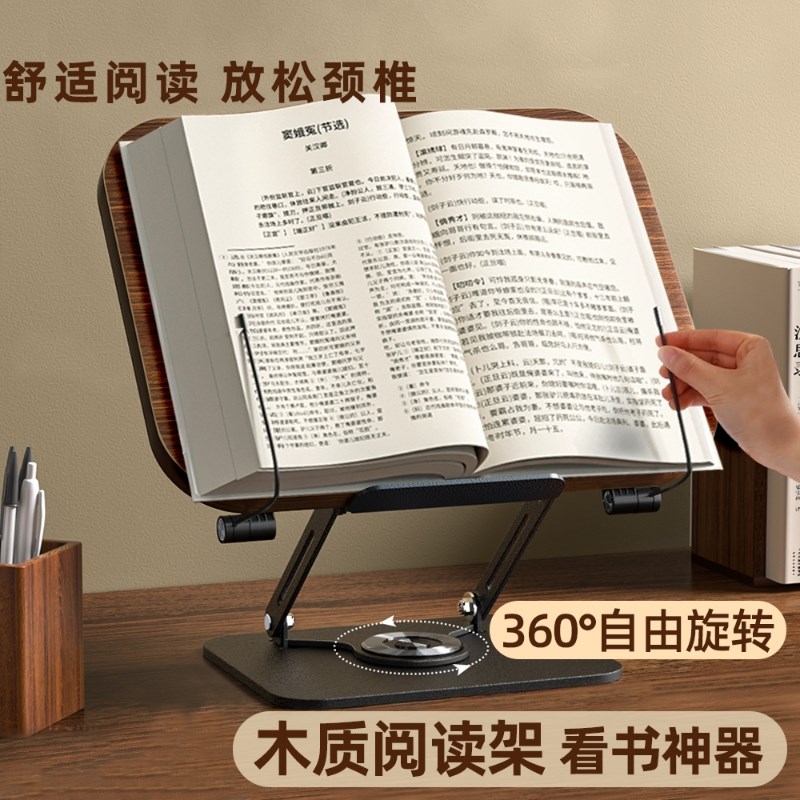 360旋转实木可升降阅读支架黑胡桃木儿童多功能看书神器阅读架