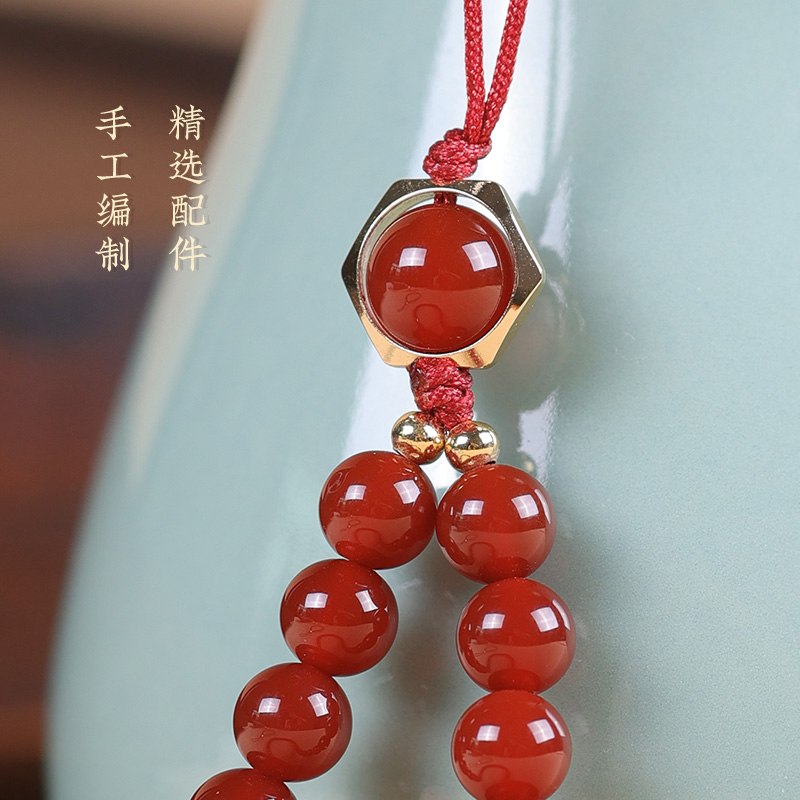 原创天然玉髓手腕款挂饰U盘包防丢绳中国风高级感短款手机挂链