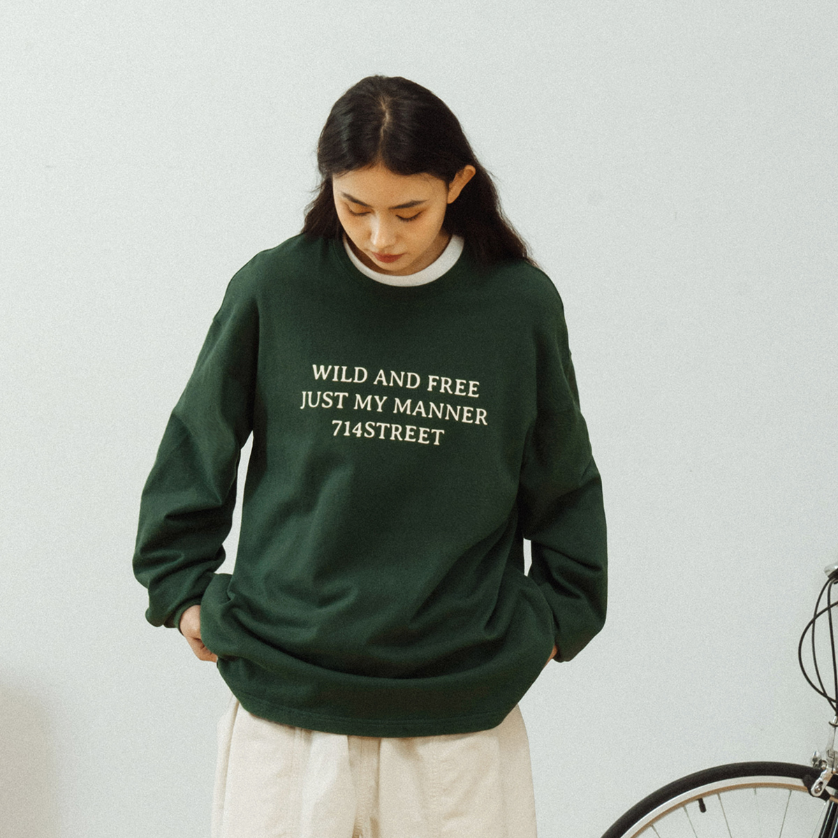 714street长袖T恤男潮牌2023春季新款宽松纯棉打底衫圆领套头上衣