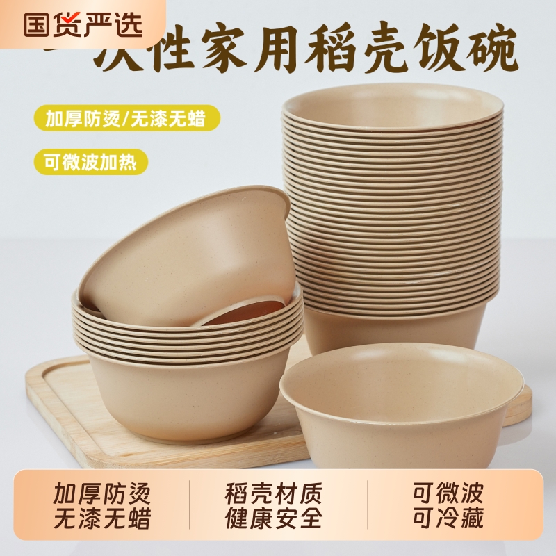 稻壳一次性碗筷套装加厚食品级酒席饭碗餐具聚餐烧烤露营婚庆家用