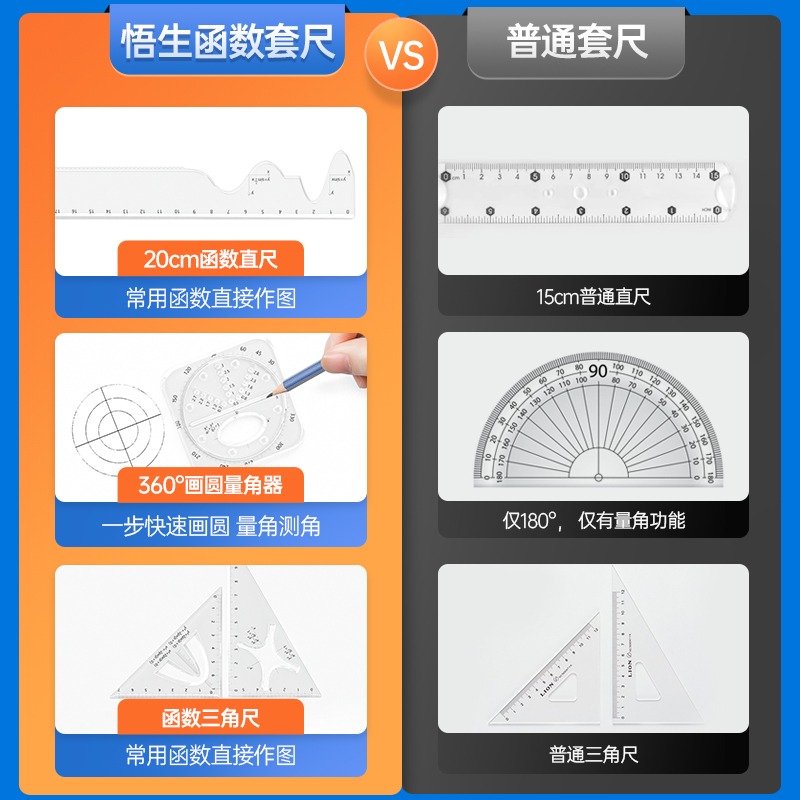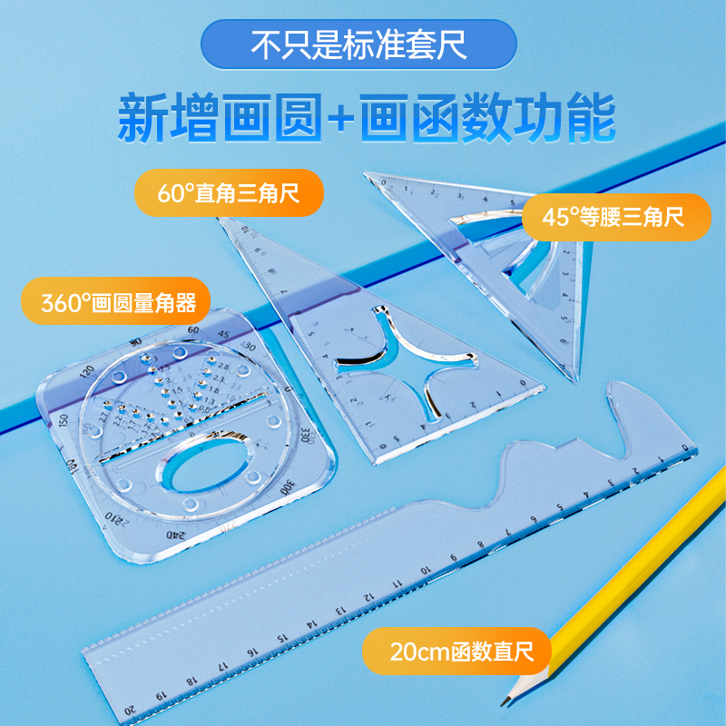 悟生初高中函数套初高中小学生尺绘图尺三角尺量角器四件套高颜值几何绘图专用尺子数学教学文具透明高颜值