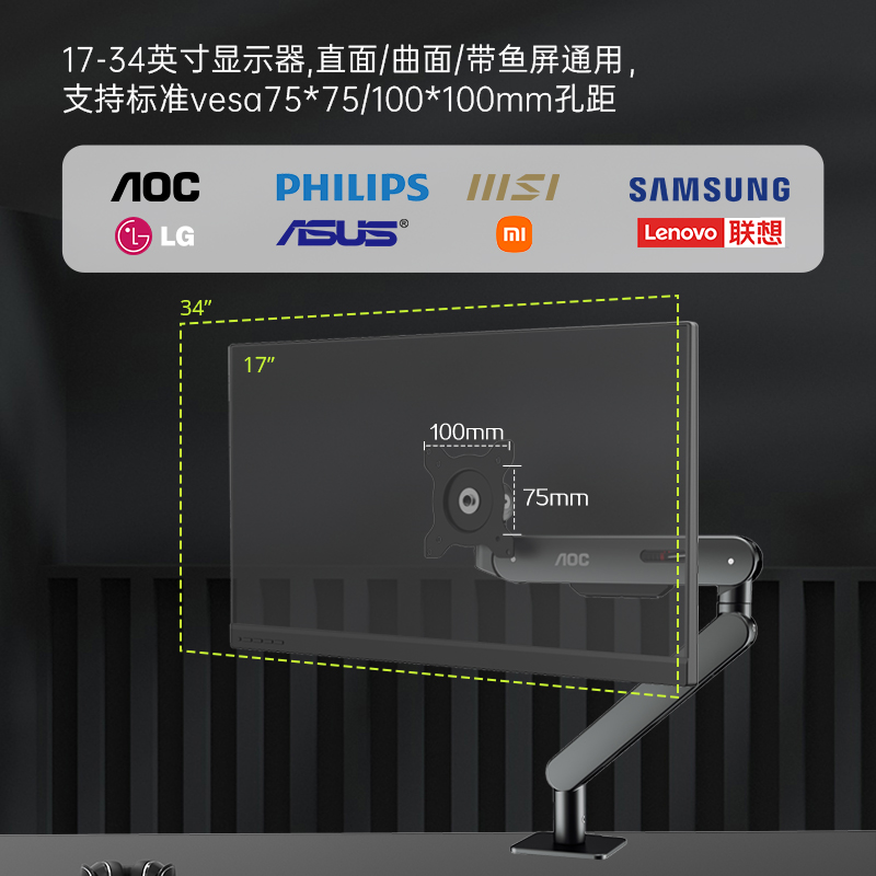 【显示器搭配减100 确认收货返】AOC支架机械臂电脑屏幕穿孔AM500
