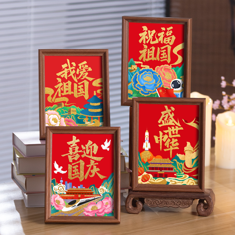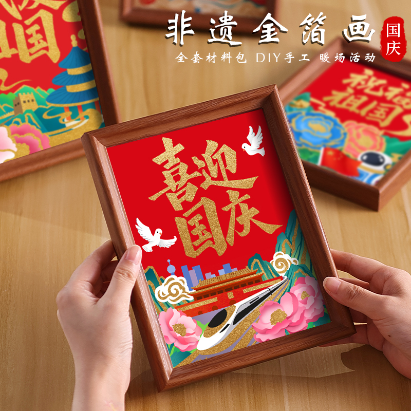 国庆节非遗金箔画手工diy材料装饰画儿童烧箔画主题相框爱国祖国