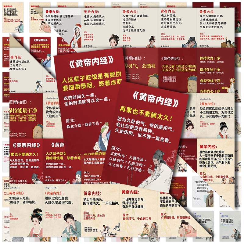 120张皇帝内经贴纸健康古法中医装饰笔记本手账防水贴画