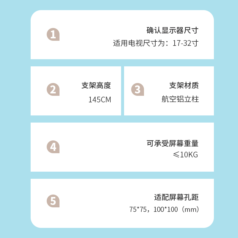 威格显示器推车落地挂架电脑屏幕万向支架VESA可移动底座高低调节