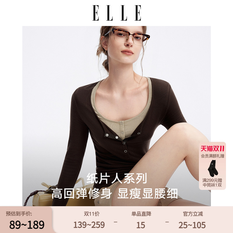 ELLE微塑天丝羊毛肌底衣修身显瘦舒适百搭打底上衣2025秋季新款