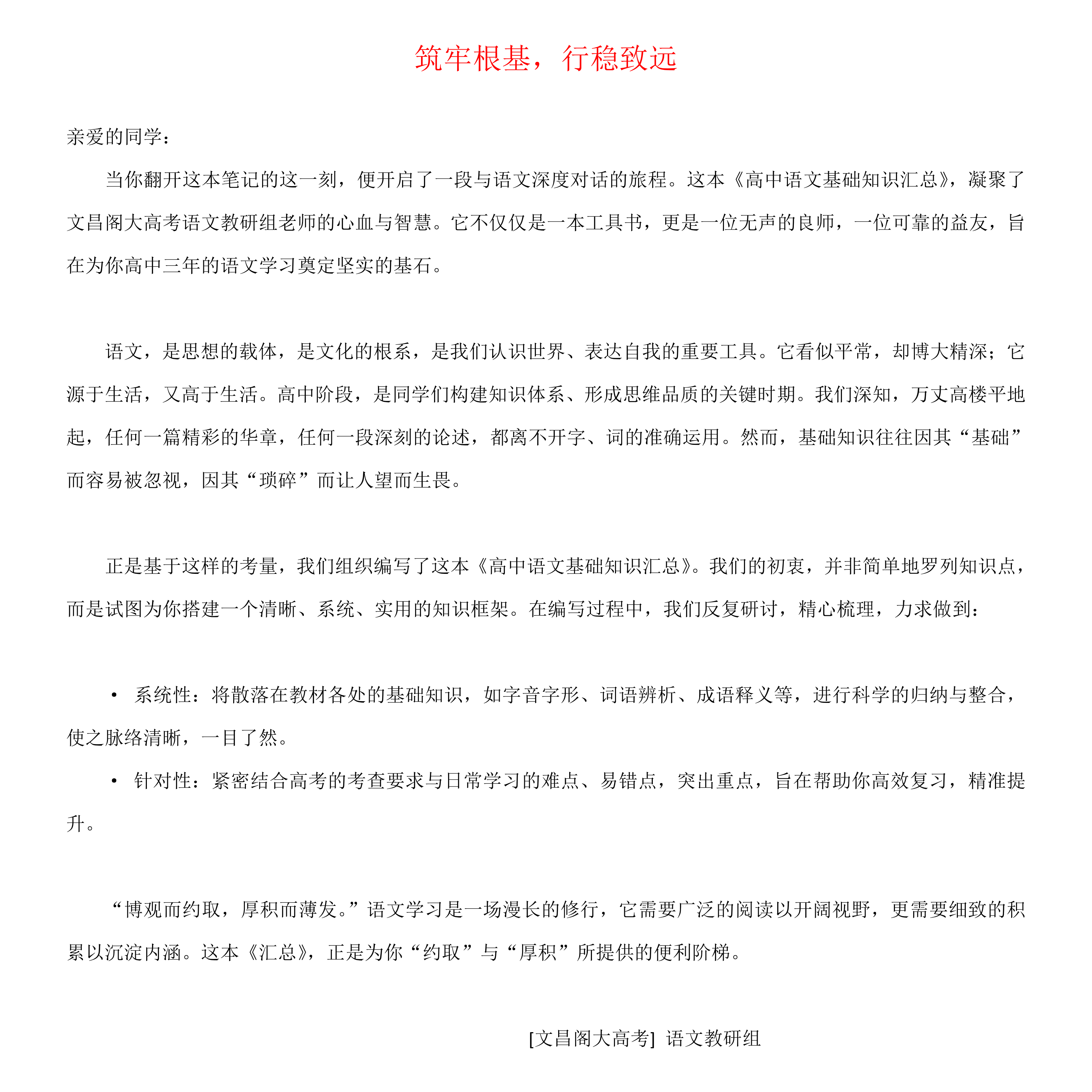 2026高中语文基础知识手册知识点汇总结复习高考语文必背高一高二