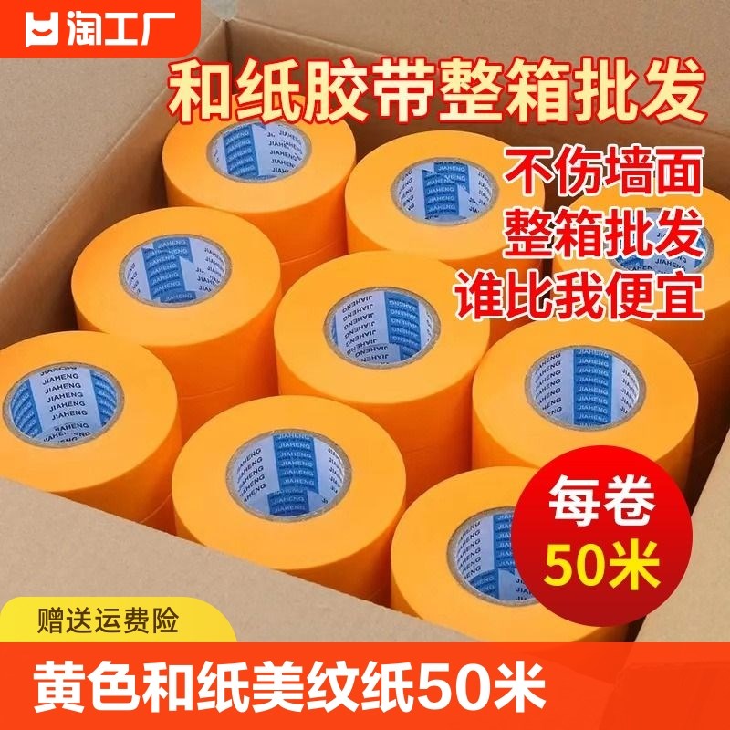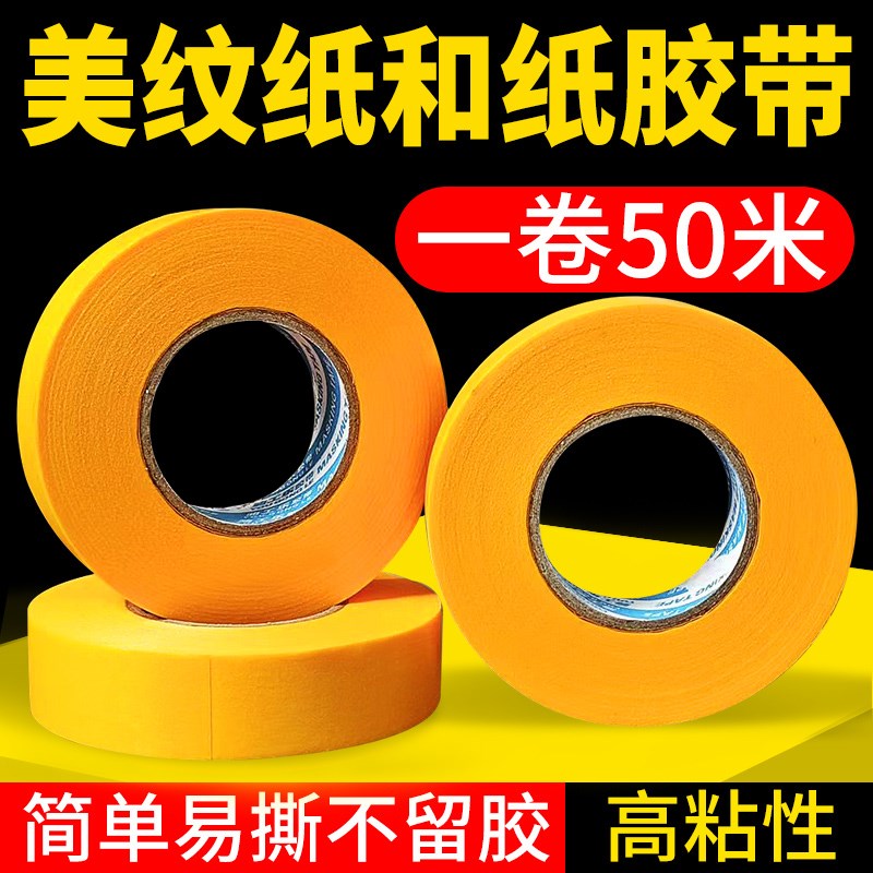 黄色美纹和纸胶带外墙真石漆高粘分色纸喷漆装修瓷砖美缝包邮50米