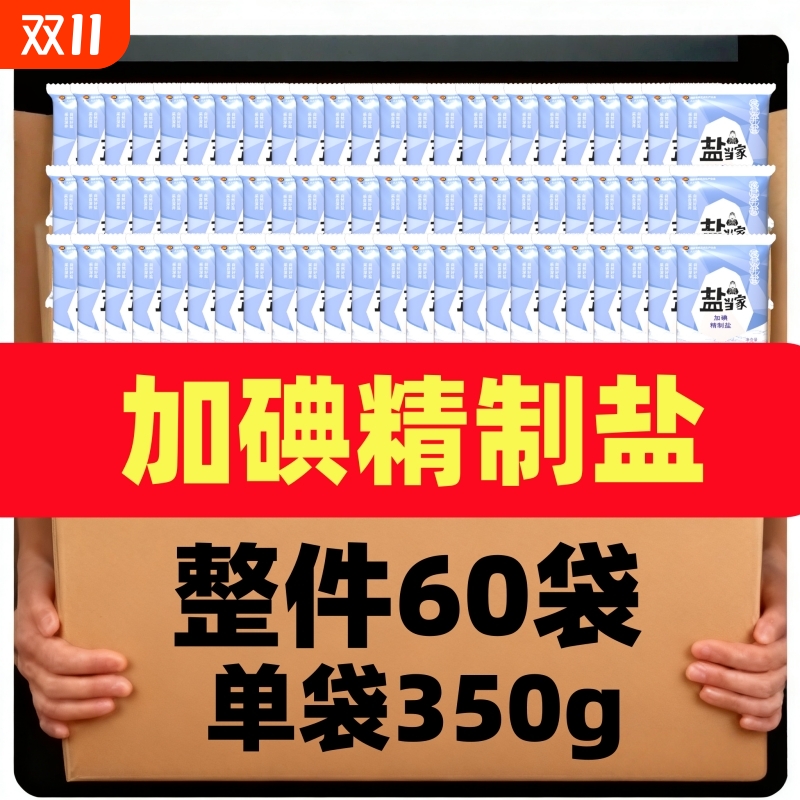 盐当家食用盐350g*60袋整件久大深井盐加碘精制盐食用盐调味料