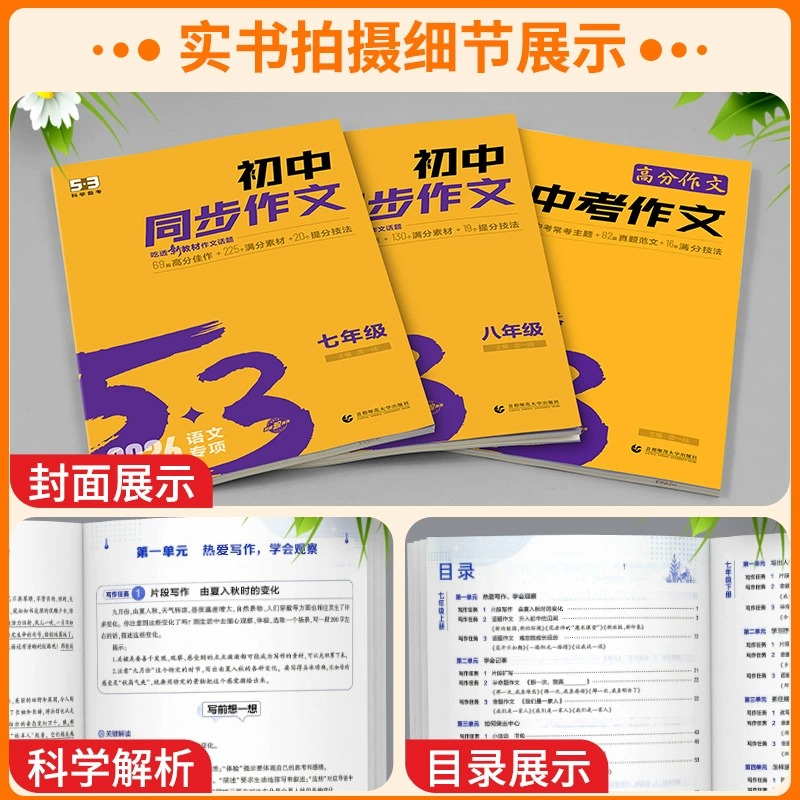 2026版53初中同步作文七年级八年级九年级中考人教版语文训练题阅读理初上册满分优秀作文书大全素材高分范文基础高效精选知识点