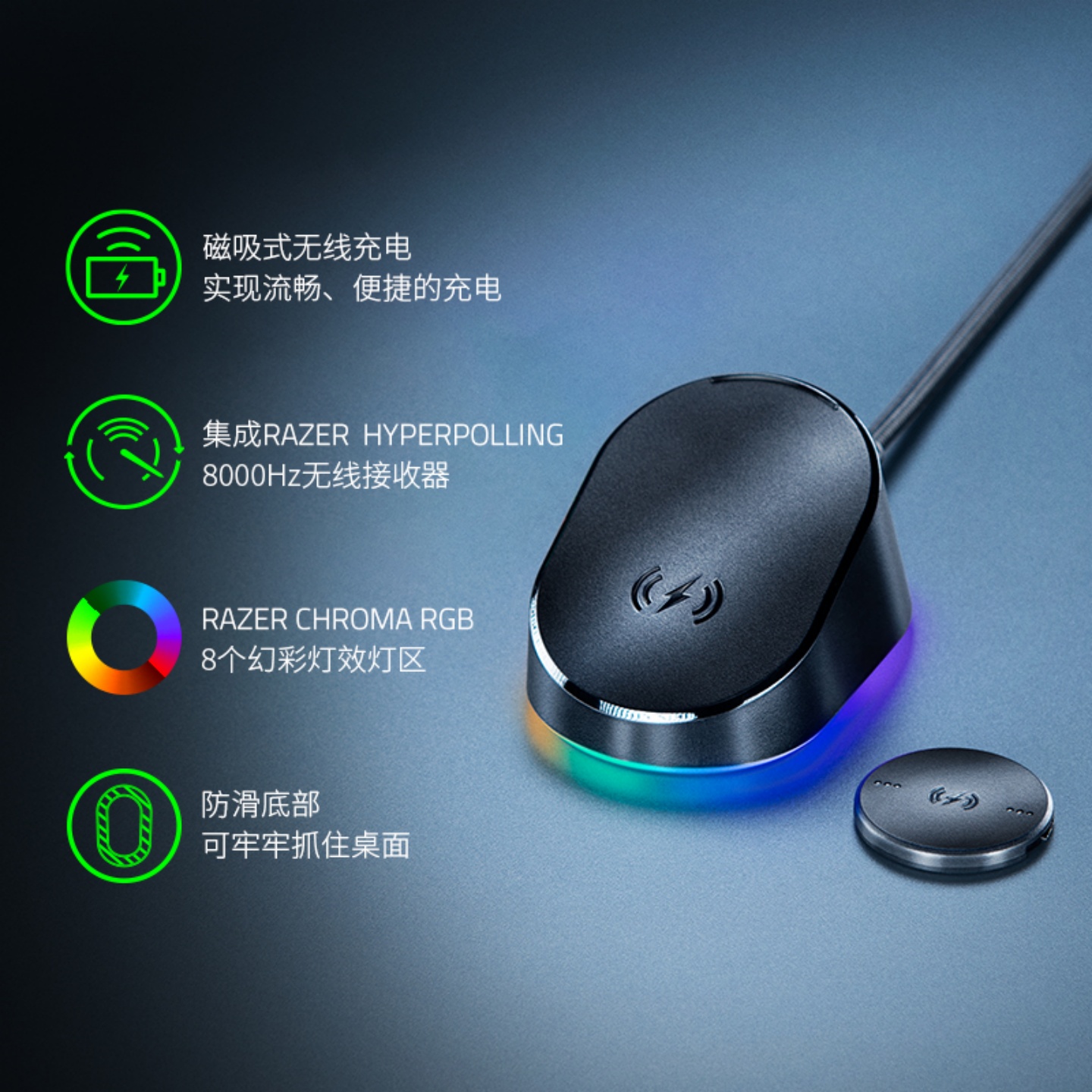 Razer雷蛇鼠标充电底座专业版巴塞V3眼镜蛇RGB无线充电模块8000Hz