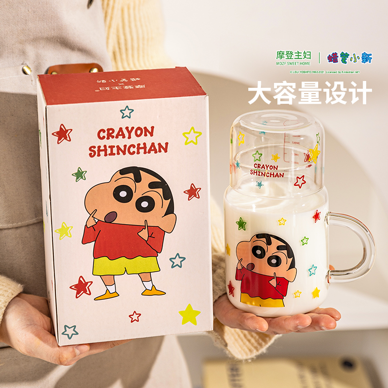 【摩登主妇&蜡笔小新】玻璃杯带盖水杯女大容量办公室杯子冷水壶