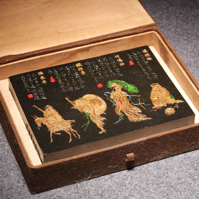 国家非遗70年代采用清代老墨版制《八仙过海》老古墨块 曹素功古法油烟墨锭 收藏文房四宝 艺术礼品书房摆件
