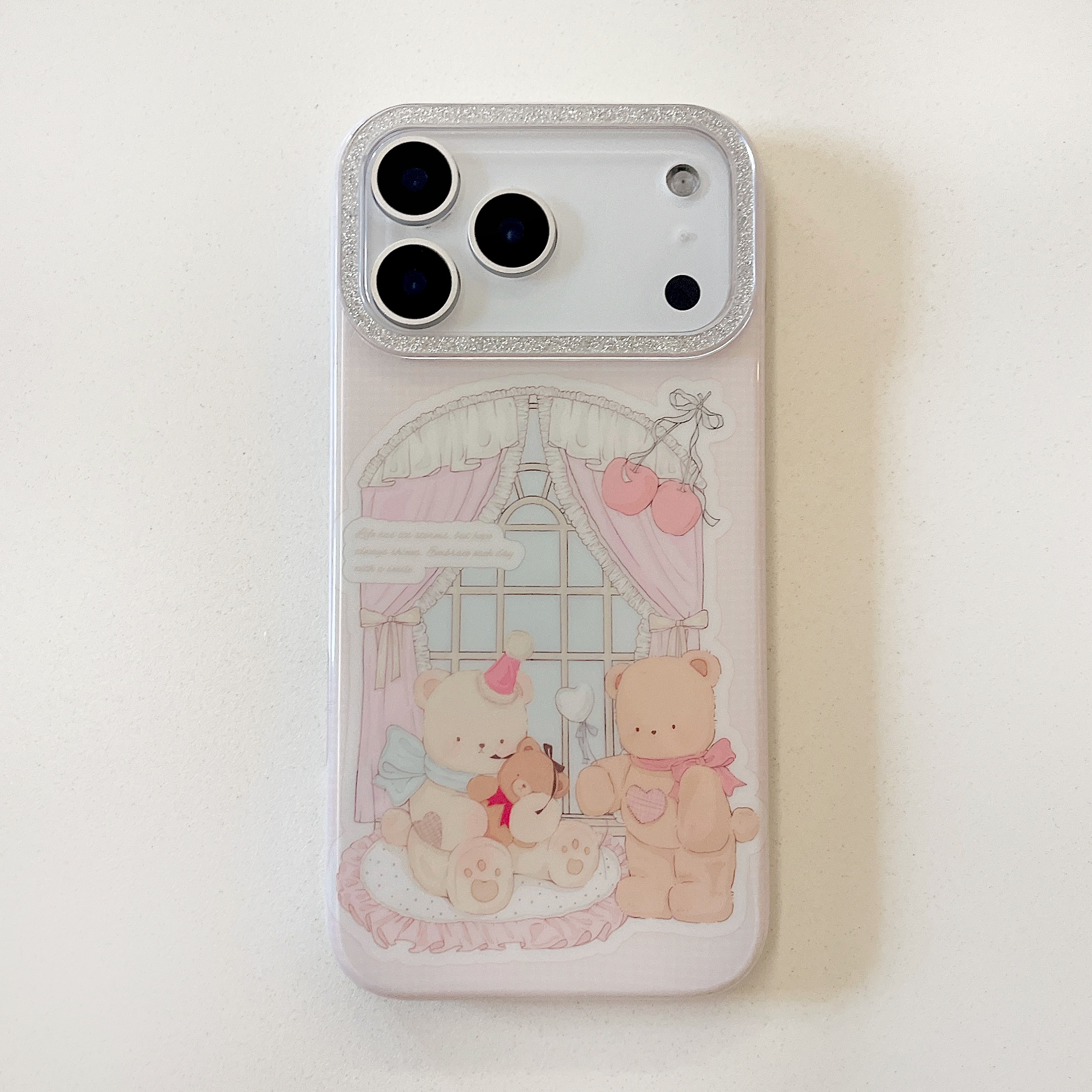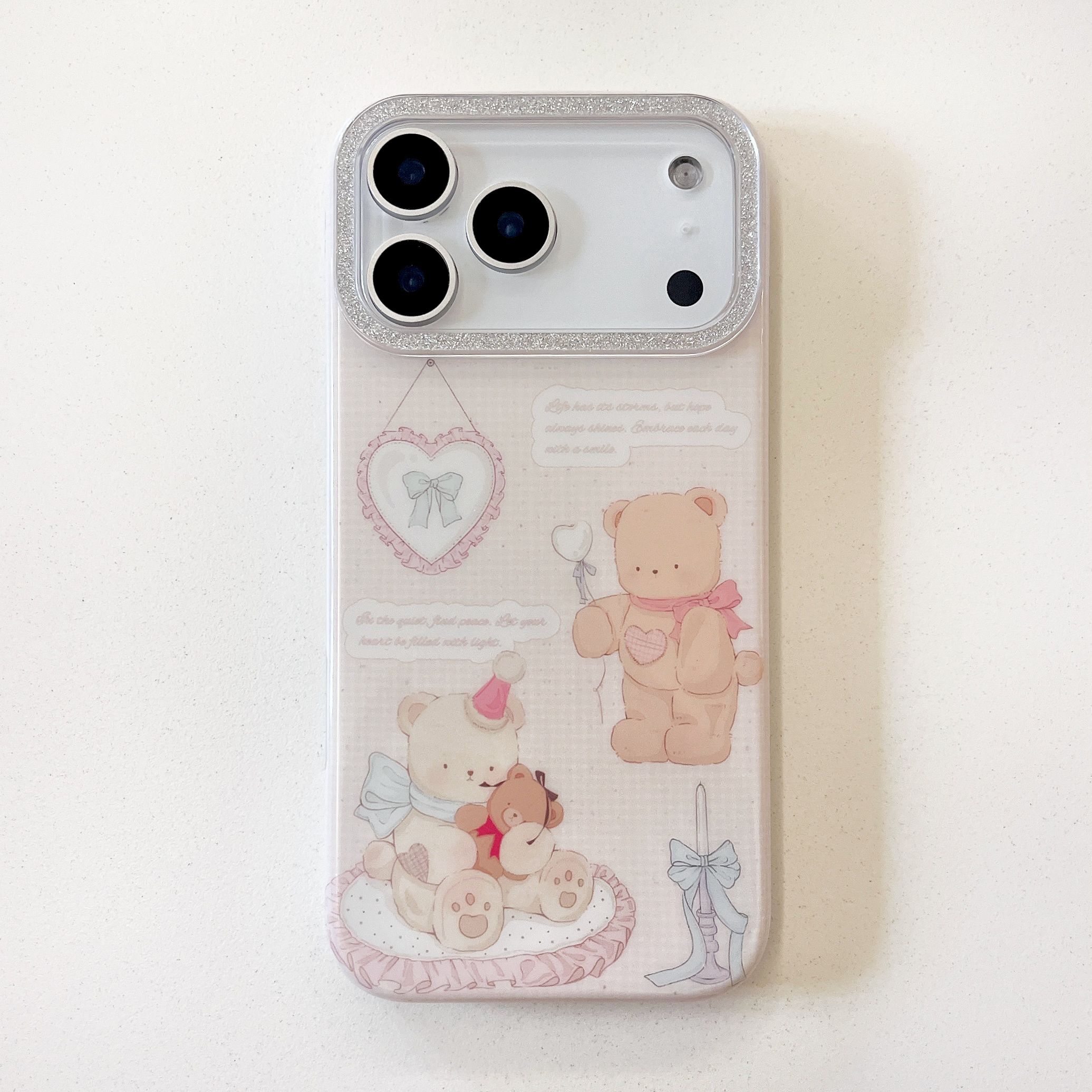 淳于亦ins风可爱长腿粉色蝴蝶结小熊苹果17promax手机壳15pro防摔保护套14/1硅胶软壳16少女心粉色闪粉镜头壳