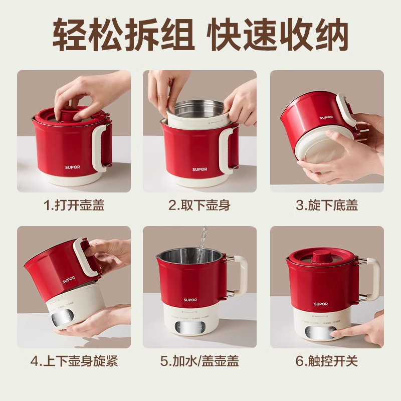 苏泊尔便携式烧水壶家用旅行2025新款保温水壶小型可折叠电热水壶