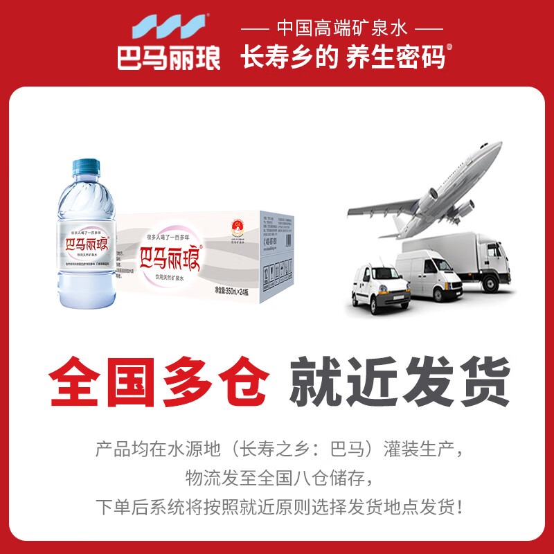 巴马丽琅天然矿泉水350ml*24瓶装整箱巴马长寿乡家庭弱碱性饮用水